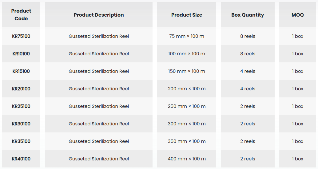 - It offers a suitable packaging solution for your medical device with its wide range of sizes and gusseted structure.